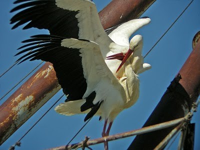 Son muy difíciles de distinguir. La mejor situación para observar el sexo de una cigüeña es en el momento de la cópula. La cigüeña macho se sitúa sobre la hembra moviendo las alas.